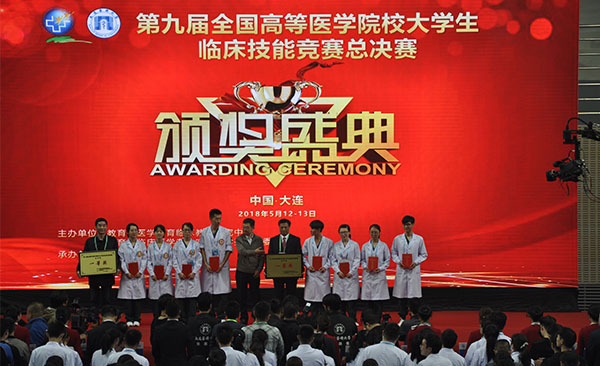 5月12日至13日,第九届全国高等医学院校大学生临床技能竞赛总决赛在大连医科大学举行,我校姜慧敏、陈冰融、陈晨、夏林四名参赛选手在比赛中沉着冷静、不畏强手,以扎实的临床基本功和出色的临场发挥,继2017年之后,连续第二年荣获全国总决赛一等奖。