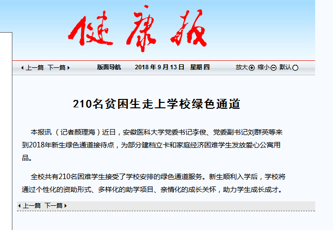 全校共有210名困难学生接受了学校安排的绿色通道服务。新生顺利入学后,学校将通过个性化的资助形式、多样化的助学项目、亲情化的成长关怀,助力学生成长成才。