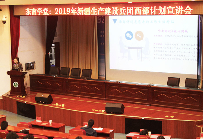“用一年不长的时间,做一件终生难忘的事情。”宣讲会现场,三名志愿者围绕自己的工作,介绍了新疆的风景、美食、风俗等各方面情况;结合多姿多彩的志愿服务经历,与现场同学分享了自己的成长与感悟,展现出他们建功西部、服务基层的精神品格。志愿者们还详细解读了西部计划的优惠政策、生活保障和相关待遇情况,并鼓励同学到祖国需要的地方去建功立业。