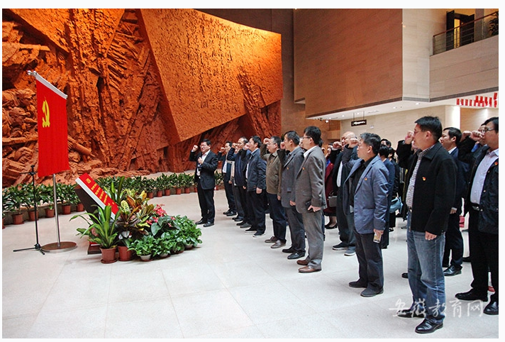 “我志愿加入中国共产党,拥护党的纲领,遵守党的章程,履行党员义务,执行党的决定,严守党的纪律,保守党的秘密,对党忠诚,积极工作,为共产主义奋斗终身,随时准备为党和人民牺牲一切,永不叛党。”校党委理论学习中心组成员铿锵有力的宣誓声响彻合肥渡江战役馆大厅,表达出坚定的政治信念和牢固的初心使命。