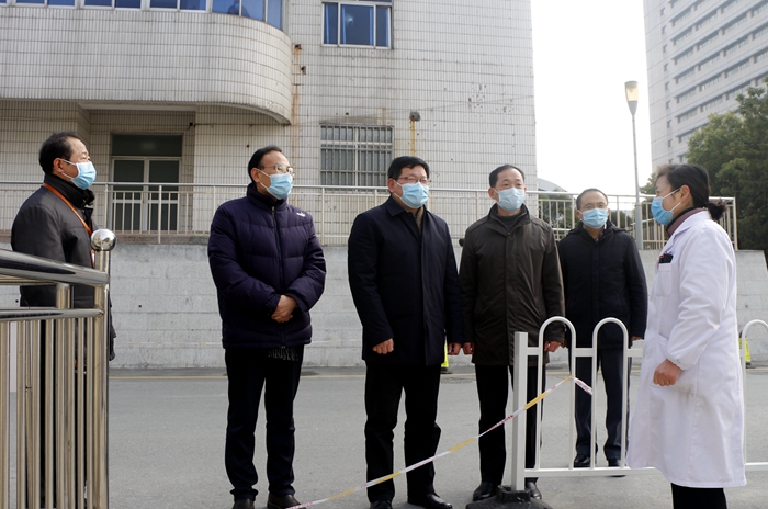 顾家山、余永强一行实地查看了该院发热门诊预检分诊处,详细了解医院的疫情防控和应急响应情况。在发热门诊,顾家山询问患者就诊流程,并再三叮嘱医护人员要注意自身防护。