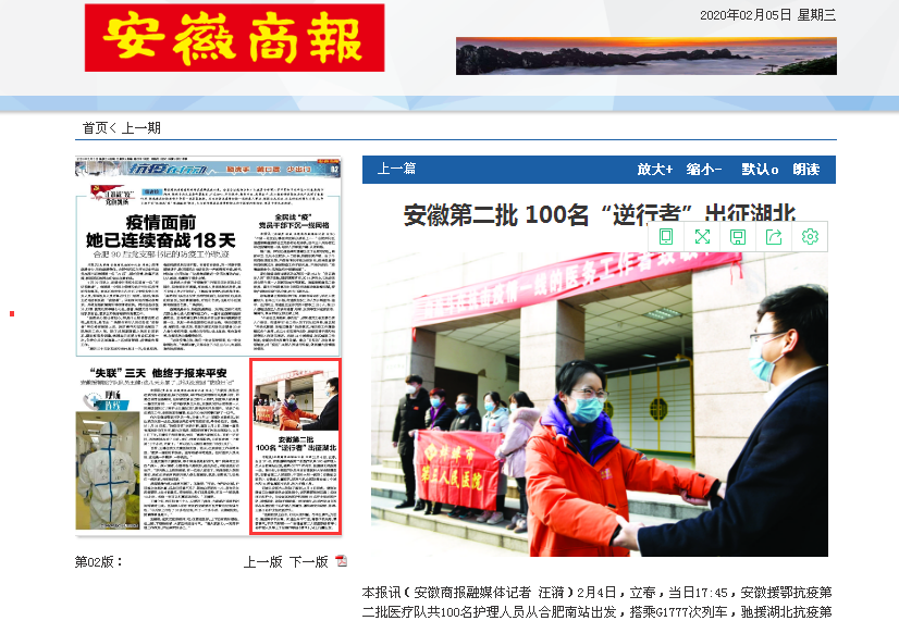 安徽商报:安徽第二批 100名“逆行者”出征湖北
