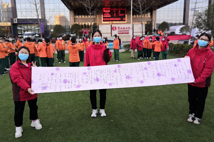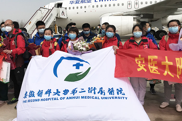 我校此批返回的支援湖北医疗队队员,包括第一附属医院、第二附属医院、第四附属医院、附属巢湖医院和附属阜阳医院各3人。其中,一附院沈霞、张婷婷,二附院何晓丽、王磊,四附院何春林、附属巢湖医院周宇鹏和附属阜阳医院位苗苗,因在方舱医院工作期间表现突出,被武汉东西湖方舱医院党委授予了“先进标兵”荣誉称号。