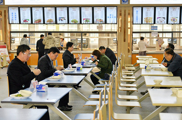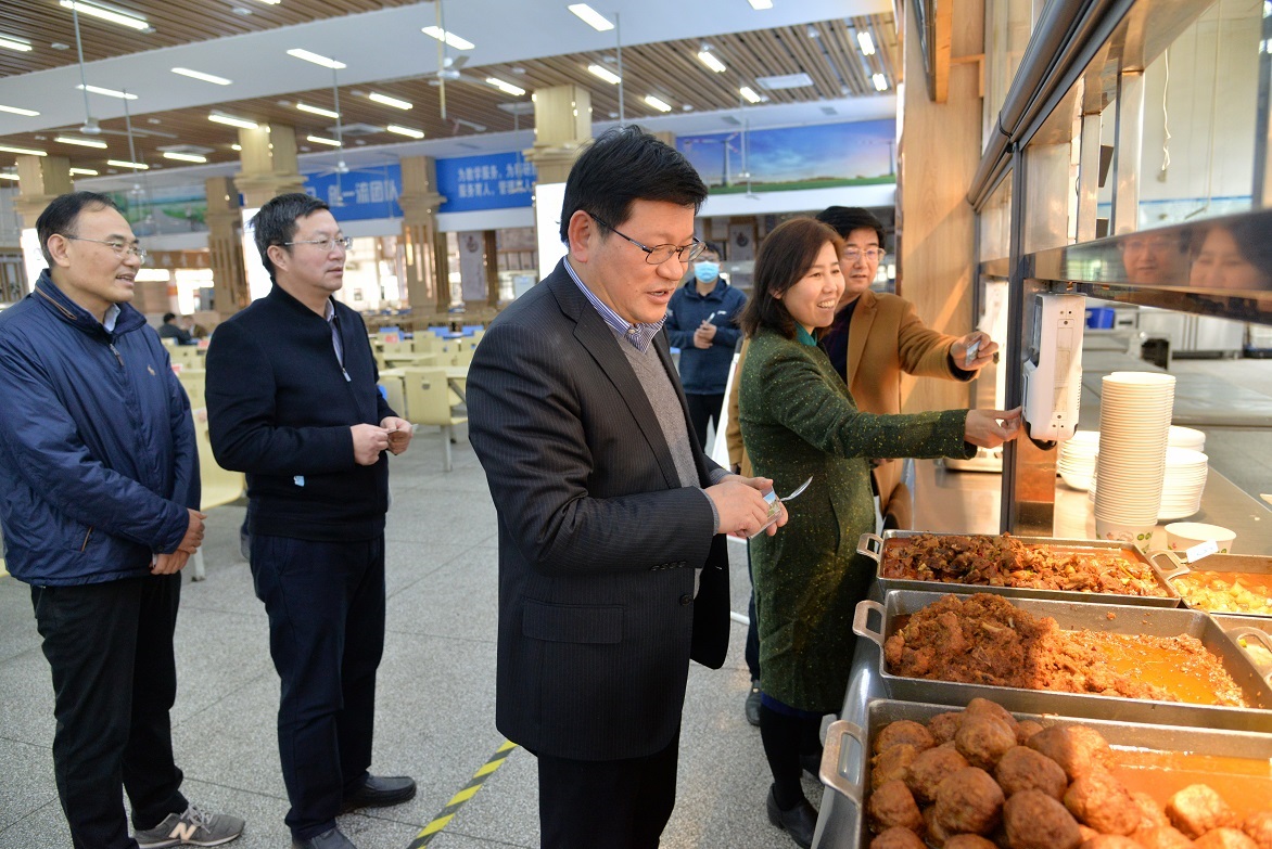 3月24日中午,全体校领导前往校本部学生食堂,实地检查指导开学前各项餐饮保障工作落实情况,并与师生在食堂共同就餐。