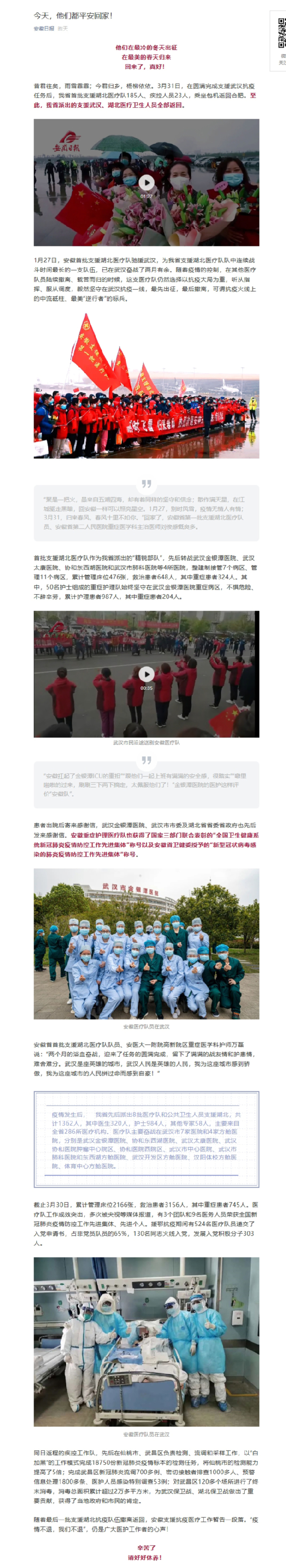 安徽日报官方微信:今天,他们都平安回家!