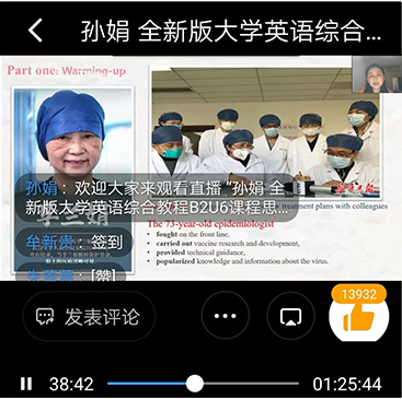 此次直播在线参与教师人数达1448人,孙娟展示课程获观众点赞数高达14099人次,倍受同行好评。我校人文医学学院全体外语系教师全程观摩了本次直播,并积极参与研讨交流。(人文医学学院 杨顺利)