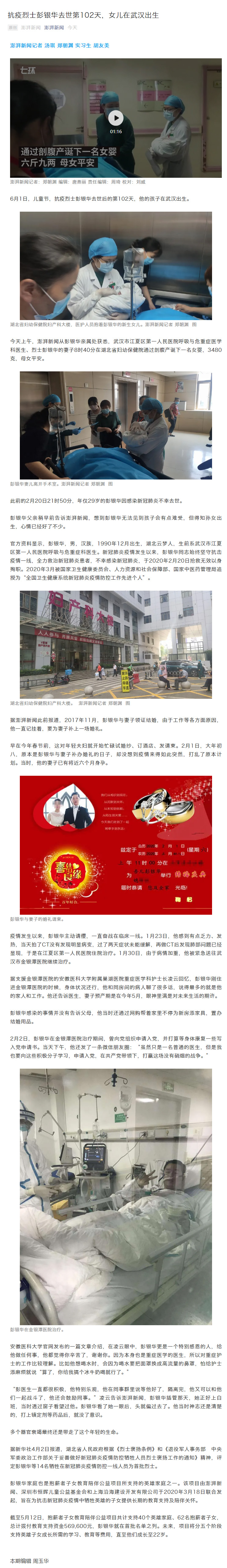 澎湃新闻:抗疫烈士彭银华去世第102天,女儿在武汉出生