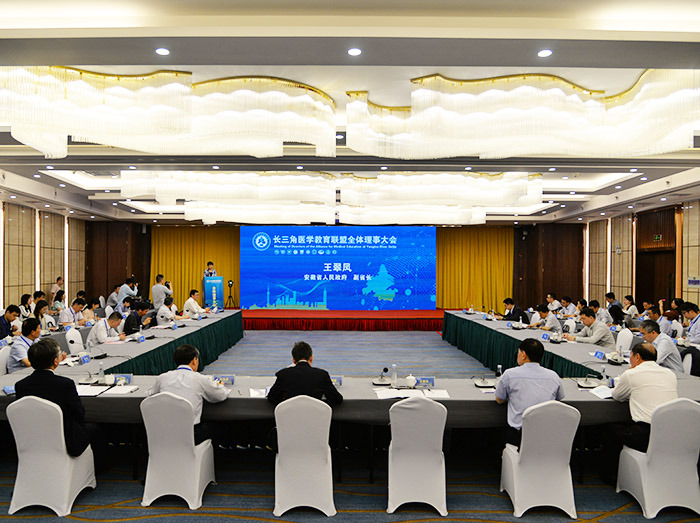 6月5日上午,长三角医学教育联盟全体理事大会在合肥召开。安徽省人民政府副省长王翠凤出席大会并致辞,省政协副主席、教育厅厅长李和平,省政府副秘书长左俊等陪同出席。我校为会议承办单位。