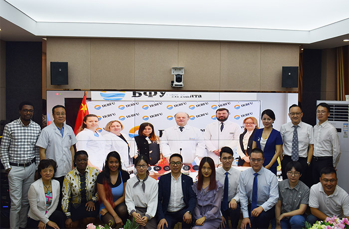 6月16日,由我校与俄罗斯康德波罗的海联邦大学共同发起组织的中俄学生新冠疫情专题视频论坛在第一附属医院互联网远程会议中心举行。校长曹云霞,俄罗斯康德波罗的海联邦大学校长亚历山大·费德罗夫出席此次论坛。