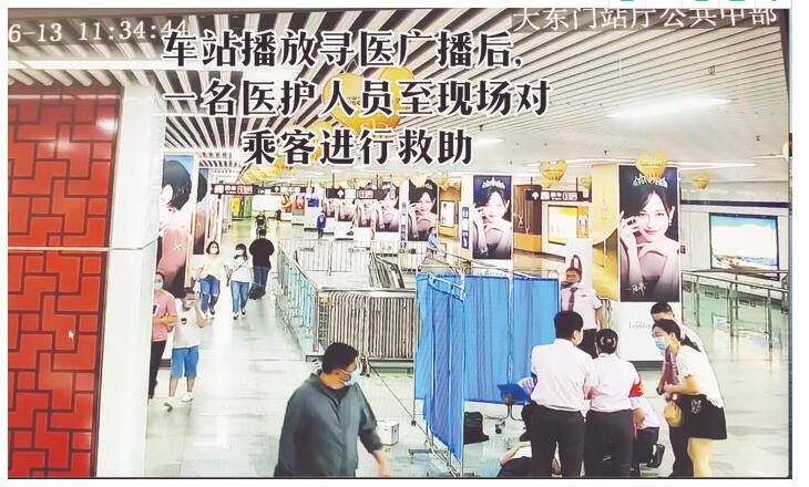 本报讯 6月13日,一名老人在轨道交通大东门站突然晕倒,不省人事。危急时刻,值班站长童娜娜通过车站广播寻找医生,所幸安医大一附院乔娜医生正从1号线出来换乘2号线。在大家的共同努力下,老人被120送到附近医院救治,目前已转危为安。
