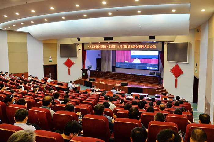 7月31日上午,安徽省委教育工委召开《习近平谈治国理政》第三卷宣讲学习辅导报告会,深入学习《习近平谈治国理政》第三卷,推动学懂弄通做实习近平新时代中国特色社会主义思想,省委教育工委书记钱桂仑主持报告会。我校在图书馆第一报告厅设分会场,校领导顾家山、曹云霞、余永强、肖圣龙、黄新美、李卫平出席。