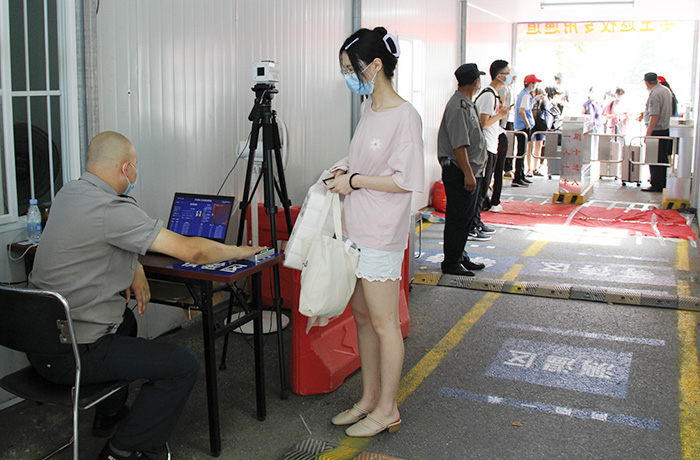 “同学,你好!请扫描安康码,出示你的校园卡!”