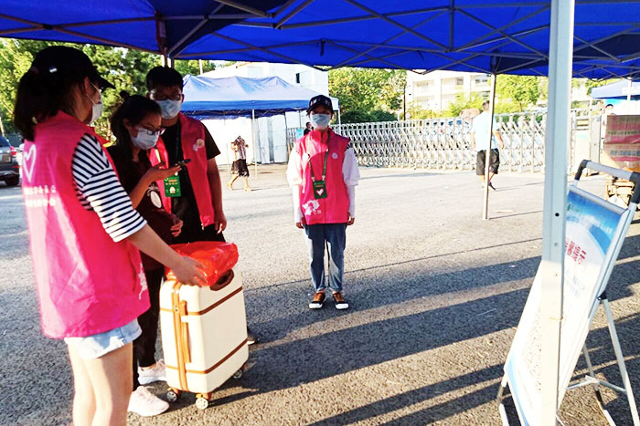 临床医学(“5+3”一体化)专业2018级本科生任子鸣在南校区完成报到手续后,也表达了自己返校的感受。“尽管天气炎热,辅导员老师和志愿者仍然尽心尽力、坚守岗位,大家都在为返校复学做努力,我们更应该带着回家的心情返校,怀着济世的志向学医!”