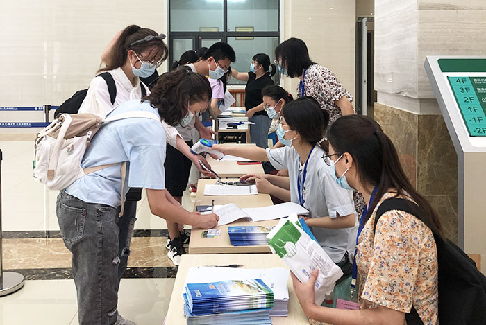 报到时,校本部学生从学校北门进入校园,南校区学生从翡翠路校门进入校园。进入校门后,出示个人身份证、校园一卡通,经保卫处核验身份信息和返校批次无误后,在工作人员引导下检测体温有无异常,并进入指定消毒区域,进行相关物品消毒,更换新口罩。完成入校流程后,学生们前往各学院报到区再次核验健康码和身份信息,并领取住宿报到证及相关防疫物资,至宿管中心上交报到证并再次测温正常后,完成返校流程。