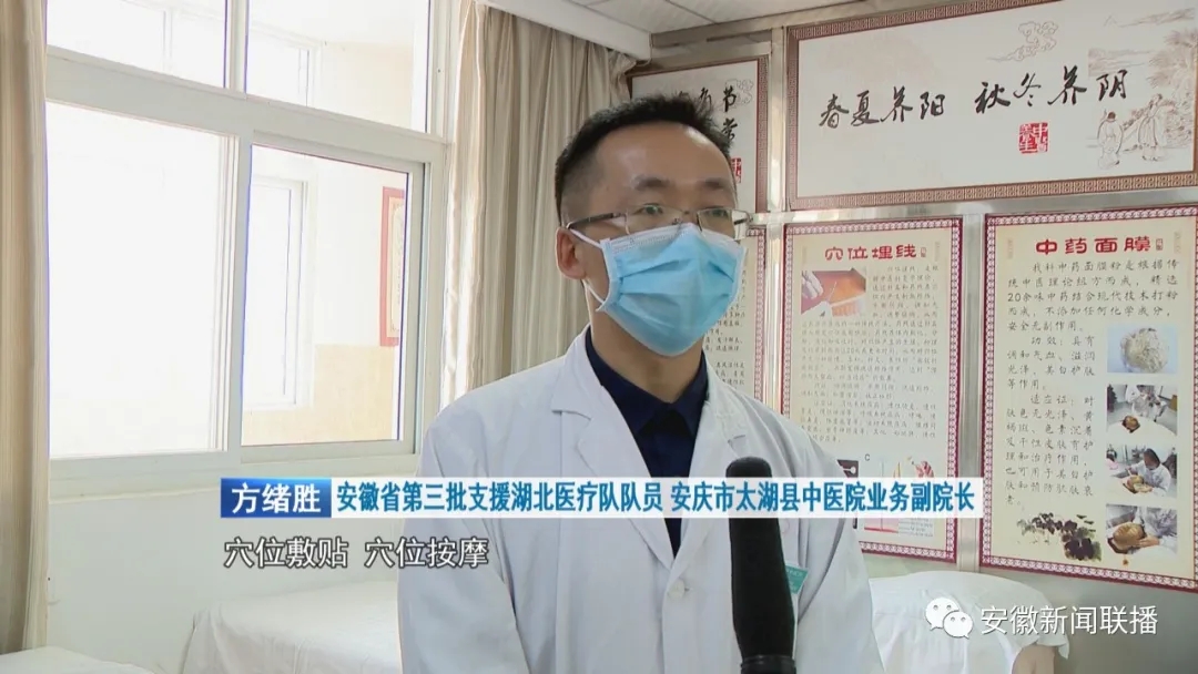 我们尝试给患者发放中医汤剂,中药香囊,穴位敷贴,穴位按摩,这些中医治疗手段都用上。教大家跳广场舞、打太极拳,效果非常好,“安徽疗法”还获得了世界卫生组织专家的点赞。