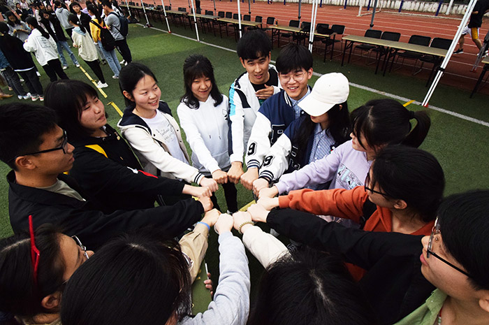 学生积极参与心理健康教育户外素质拓展小游戏。张朔祯摄