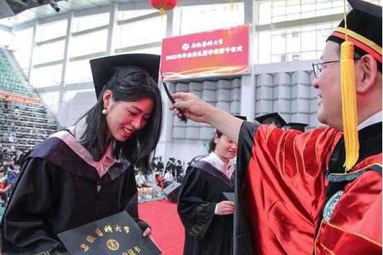 典礼通过线上平台直播,全校师生及广大家长亲友、校友等3万余人次观看。2022届3174名本科生、1536名研究生、60名留学生线上线下参加。典礼现场涌现暖人瞬间:两位博士毕业生带着双胞胎子女见证父母的高光时刻。