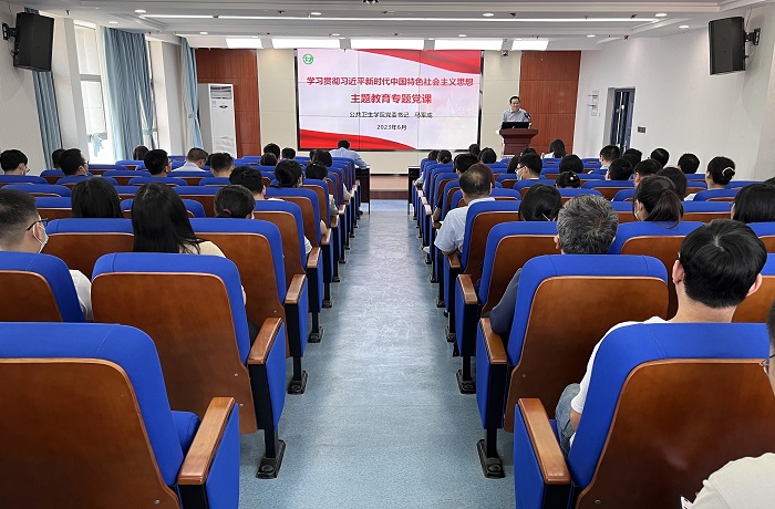 6月6日,公共卫生学院举办学习贯彻习近平新时代中国特色社会主义思想主题教育专题党课,该院党委书记马军成主讲。