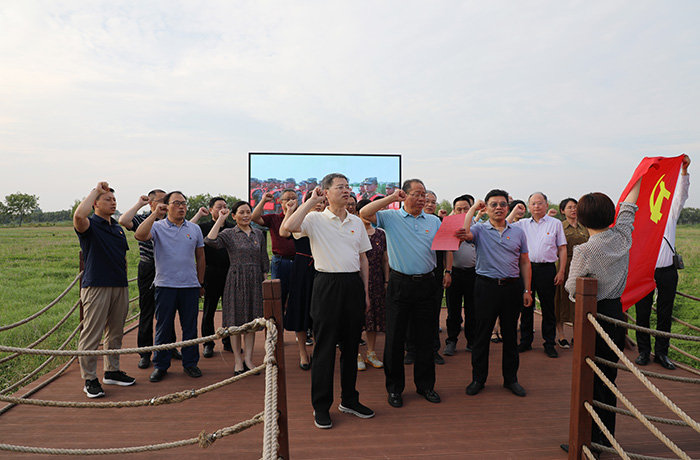 学员们随后来到巢湖大堤罗家疃段,驻足观看习近平总书记在巢湖大堤上考察时的视频和图片展示,通过了解防汛抗洪救灾一线的先进典型和感人事迹,感悟学习不怕累苦、不怕疲劳、不怕牺牲的精神斗志,和众志成城、顽强拼搏、敢于胜利的英雄气概。在堤坝前,党员们庄严举起右手,重温入党誓词,表达了对党的无比忠诚和为党的事业奋斗终身的决心。