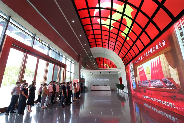 在教育基地,全体成员认真观看了《永远在路上》专题片和关于腐败案件的警示教育视频,并在讲解员的引导下,依次观看了“纪律立党•从严治党”“廉润江淮•清风扬帆”“以案为鉴•警钟长鸣”“不忘初心•永葆清廉”四个展厅。结合展板、图片、视频、雕塑、互动查询、场景还原等的展示,全体人员全面回顾了中国共产党筚路蓝缕的百年纪律建设史以及安徽省委落实全面从严治党、深入开展党风廉政建设和反腐败斗争成果。一封封忏悔书、一幅幅服刑场景图片、一段段鲜活案例,使全体党员接受了一次直抵人心、直观深刻的精神洗礼和党性党纪教育。