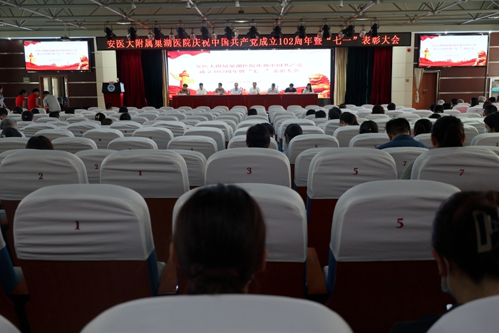 6月28日下午,附属巢湖医院在综合服务楼六楼报告厅举行庆祝中国共产党成立102周年暨“七一”表彰大会。该院党委书记刘颀出席会议并讲话,院领导葛丽丹、王陶、刘寰忠、汪卫东、孙会芹等参加会议。