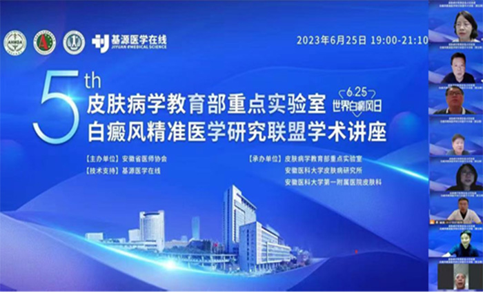当晚还举办了线上专题学术会议,来自联盟及全国的皮肤科医师共计1056人次参会。聚焦就白癜风诊疗热点问题和科研前沿新方向,来自中国医学科学院皮肤病医院、吉林大学第一医院、中日友好医院、中国科学技术大学附属第一医院以及我校第一附属医院、第二附属医院的多位专家教授分享了研究成果。整场会议聚焦前沿、实战性强,为全国的皮肤科医师总结出一套可行的白癜风诊疗规范、为白癜风科学研究的革新指出了新思路。