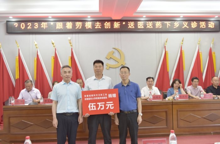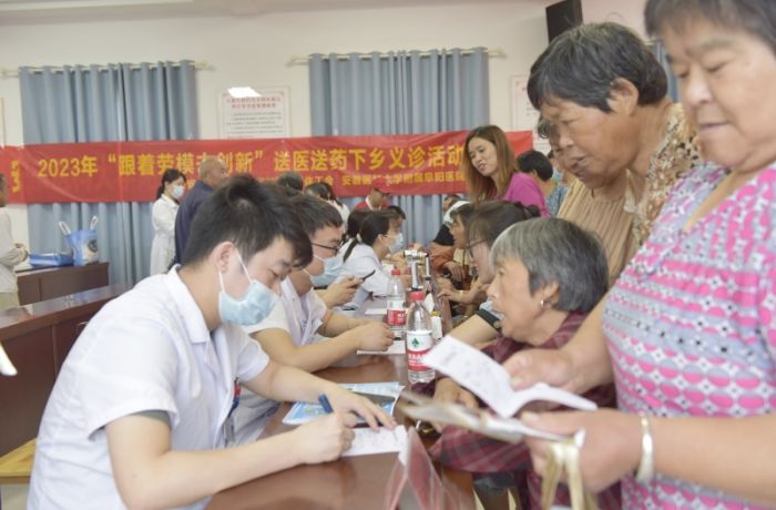 本次送医送药下乡活动是安徽省教科文卫体工会联合省内多家高校附属医院、省级医院,面向广大基层乡村开展的一项年度常规活动。附属阜阳医院作为省级三甲综合医院,连续五年至阜南、颍上、六安等周边市县的基层乡村一线开展送医送药活动,不断推动省级优质医疗资源向基层下沉,为推动乡村振兴事业发展贡献了安医力量。(附属阜阳医院 乔龙辉)