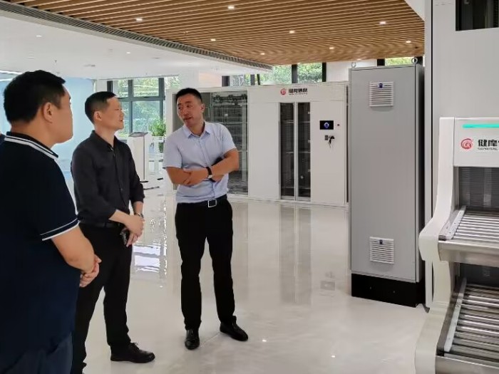 白亮亮一行参观了健麾信息的产品展区与生产基地,详细了解了公司的发展历程、组织结构、主要业务板块、未来发展等情况,并与公司负责人进行座谈交流。他详细介绍了学校和学院的发展历史、学科建设、科学研究和毕业生就业情况,同时对健麾信息作为国内药房自动化行业领军上市企业取得的成绩,以及该公司的科创能力、市场地位以及社会责任意识给予高度评价。
