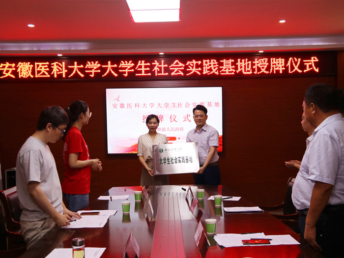 近日,阜南县王家坝镇正式成为我校大学生校外社会实践基地,授牌仪式在阜南县王家坝镇政府举行。第二临床医学院学生党总支副书记余皖婉出席授牌仪式,并与阜南县委组织部副部长、老干部局局长张飞雷,王家坝镇党委书记李省共同为校外实践基地揭牌。