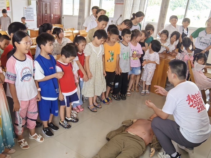 开展田园课堂,呵护儿童成长。在有着“国家级文明村”和“中国美丽村庄”荣誉称号的的元潘村,实践团结合学校“新六艺”育人品牌,为村里的留守儿童带去了预防肺结核、急救技能培训、防溺水知识普及等课程,还开展了手工制作、太极拳习练、黄梅戏传唱等兴趣课,为孩子们提供一个“七彩假期”。“希望我们的行动能给予留守儿童更多的呵护与关爱,让留守儿童在乡村振兴的沃土上健康成长。一位实践团成员这样说道。