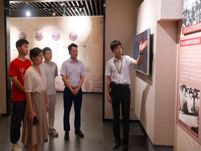 抗洪精神永不朽,丹心从来系家国。实践团一行追寻习近平总书记的足迹来到王家坝闸和王家坝抗洪纪念馆。在王家坝闸,实践团了解到其作为淮河干流的重大水利枢纽工程,自建成以来已16 次开闸蓄洪,为保卫淮河安澜发挥了重要作用。在王家坝抗洪纪念馆,实践团成员们依次参观七个展厅,结合讲解员生动细致的讲解,深刻感受到了蒙洼人民长期以来与洪水抗争的艰辛和“舍小家为大家”的精神内涵。参观结束后,实践团成员还采访了抗洪一线医生张道理。“希望你们能以医之道,济世为先,勤勉敬业,求实创新,努力把自己培养成有理想信念、有职责担当、有仁爱之心的社会有用之才。”张道理对成员们说道。