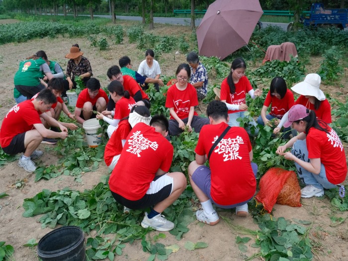 因地制宜谋发展,乡村振兴惠民生。为更加深刻领悟乡村振兴的实际意义,实践团从老观乡到西田坡,深入田间地头,和农民面对面交流,通过亲身的劳动实践积累农作经验,体会到身为新时代大学生应发扬劳动精神、知行合一,在劳动中实践锻炼。通过采访,实践团成员们真切感受到了蒙洼群众在中国共产党的坚强领导下,在长期的抗洪斗争中所形成的“王家坝精神”的内涵意义。