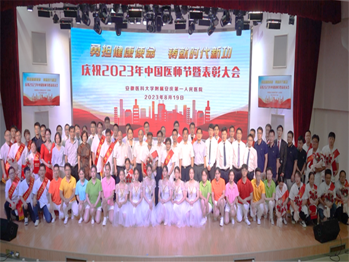 8月19日,附属安庆第一人民医院举办以“勇担健康使命 铸就时代新功”为主题的庆祝2023年中国医师节暨表彰大会。安庆市卫健委党组书记、主任潘结标出席并致辞。