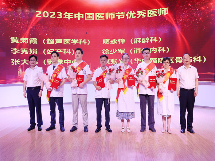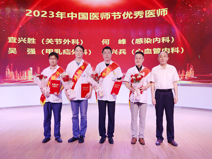 该院党委书记鲍习化,党委副书记、院长王玉,在读博士代表、心内科副主任医师姚尚,援外医师方元实爱人严彩勤现场接受访谈。会上,医院对2023年中国医师节优秀医师等先进个人和集体进行了表彰。(附属安庆第一人民医院 余琳芳 江浩伟)