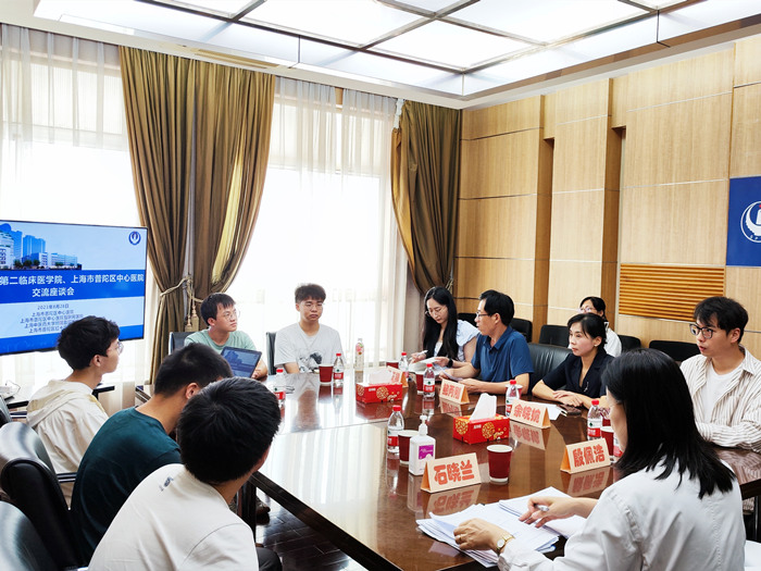近日,第二临床医学院党委副书记鲍丙刚、院学生党总支副书记余皖婉一行赴上海市普陀区中心医院、杨浦区市东医院考察交流。杨浦区市东医院院长贡东卫、院党委副书记车晓怡、分管副院长戴李华,普陀区中心医院副院长殷佩浩等参加交流座谈。