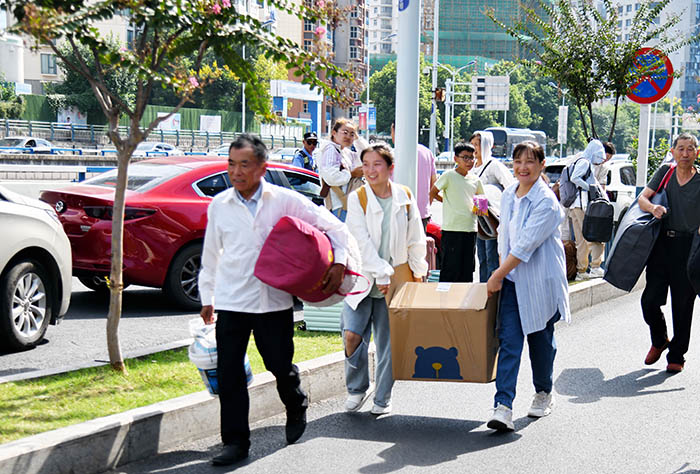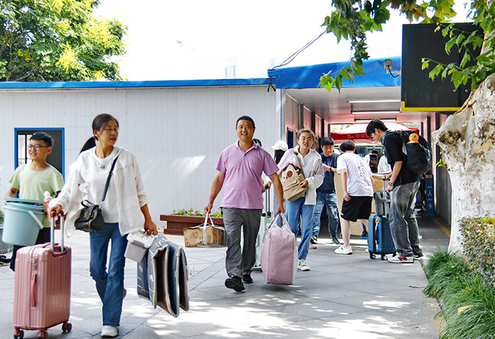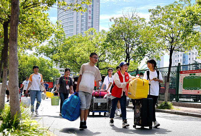 9月2日上午,伴着凉爽的秋风,我校喜迎2023级本科新生报到入校。校领导顾家山、谢瑞瑾、余永强、梁朝朝、肖圣龙、吕雄文、徐朝阳、张智分别深入校本部、南校区及东校区报到现场,检查指导迎新报到工作,看望慰问现场参与迎新的工作人员和学生志愿者,与报到新生亲切交流。我校本科新生报到时间为2日、3日两天。