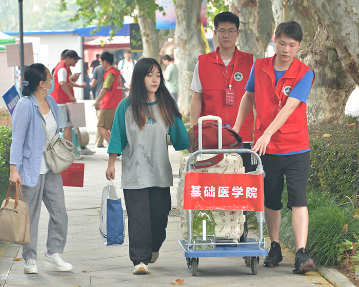 金风送爽,穰穰满家。9月6日,学校又迎来第二批报到的1960名2023级硕博士研究生(919名临床和口腔专硕研究生已于7月底8月初作为第一批研究生报到入学),来自全国各地的硕博士研究生新同学,满怀憧憬和梦想踏入校园,开启人生新篇章。校领导顾家山、谢瑞瑾、余永强、肖圣龙、吕雄文、徐朝阳前往迎新现场,先后走访了各培养单位的迎新展台,亲切慰问各单位迎新教职工和学生志愿者,并对初入校园的研究生新生表示衷心的祝贺和热烈的欢迎。
