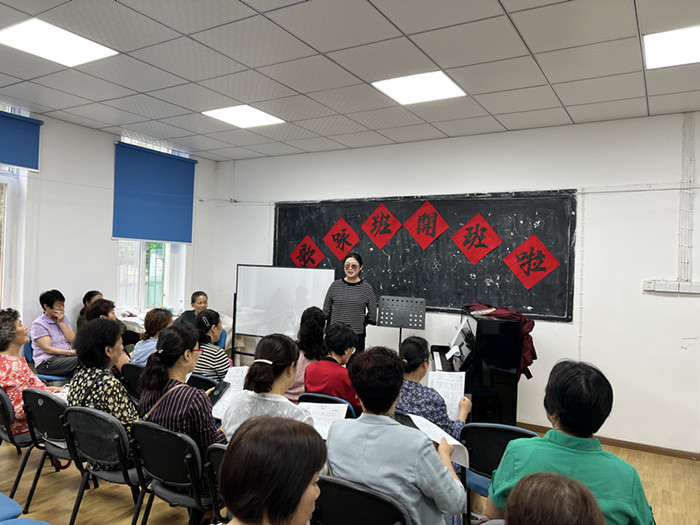 本次舞蹈班、歌咏班邀请了教学经验丰富的老师任教。授课教师提前了解参课老同志的基本水平和功底,制定针对性的教学课程。舞蹈班里,老师先进行动作示范,结合耐心细致的讲解,使在场的学员伴随着音乐旋律,在放松愉悦的氛围里开始课程的学习。为保证教学顺利开展,工作人员提前为歌咏班的学员们做好了音响设备、歌曲乐谱等的保障工作。歌咏班老师为学员讲解发声、识谱和简单乐理知识,用通俗易懂的方式展示声乐演唱技巧。学员们热情高涨,课后还不断向老师请教有关舞蹈、演唱方面的知识,学习气氛热烈。