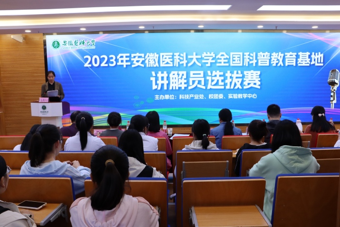 10月13日,我校国家级科普教育基地——人体结构与功能医学科普教育基地(实验教学中心)在力行楼四楼举办讲解员选拔赛决赛,邀请安徽电视台及校内相关专家进行现场评审。该中心副主任方皓舒主持比赛并致开幕式辞。