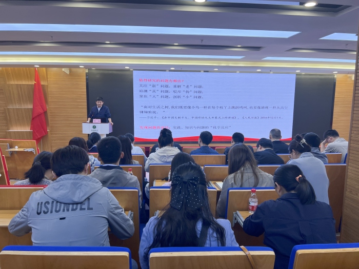 报告中,刘灿结合辅导员九大工作职责,从辅导员研究能力的内涵结构、提升意义和增长路径三个层面,阐述辅导员理论和实践研究的思维意识,他鼓励辅导员要善于结合通过学生工作发掘研究点,开展理论与实践互融互通,形成“理论提升—成果转化—实践检验—育人育己”良性循环。同时,要主动抓住机遇、用好平台,积极提升自身学历,申报各类思政课题,不断推动研究水平和业务能力双提升;可以通过辅导员工作室等形式组建研究团队,发挥不同学科专业背景的优势,开展学术研究、实践探索、研讨交流等活动,进一步提升辅导员工作的科学化、规范化水平。