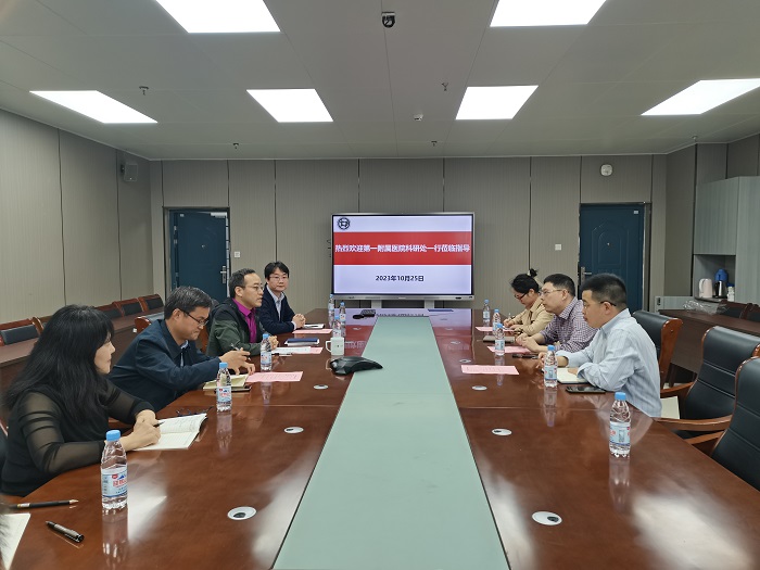 10月25日,第一附属医院科研处处长谢峻一行到公共卫生学院,就双方推进“医防融合”科研合作进行深入座谈交流。公共卫生学院院长王华出席会议。