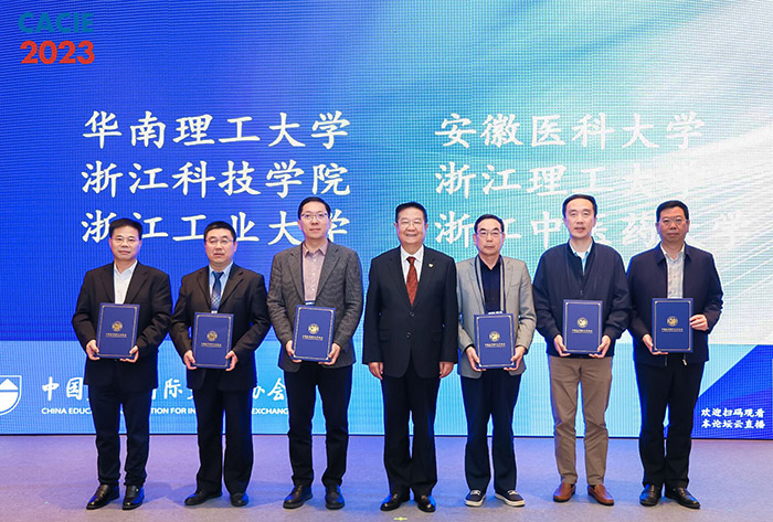 26日下午,“变局与新局”——新形势下来华留学教育的机遇与挑战研讨会上,中国教育国际交流协会举行来华留学生高等教育质量认证证书颁证仪式,向来自全国41所接受初次认证或再认证的高等院校、高职专科院校颁发证书。我校以认证有效期六年、评价等级B级的优异成绩通过认证,国际教育学院直属党支部书记黄华兴代表我校领取了证书。