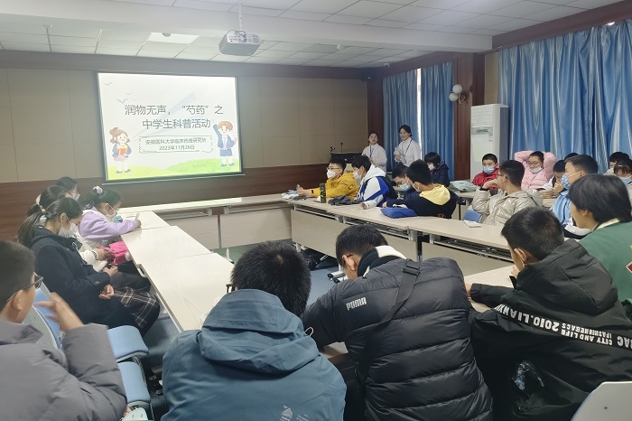 11月26日,临床药理研究所开展青少年科普活动,来自合肥市第五十中学的30名同学在该所研究生团员志愿者的带领下现场参加活动,并参观了抗炎免疫药物教育部重点实验室。