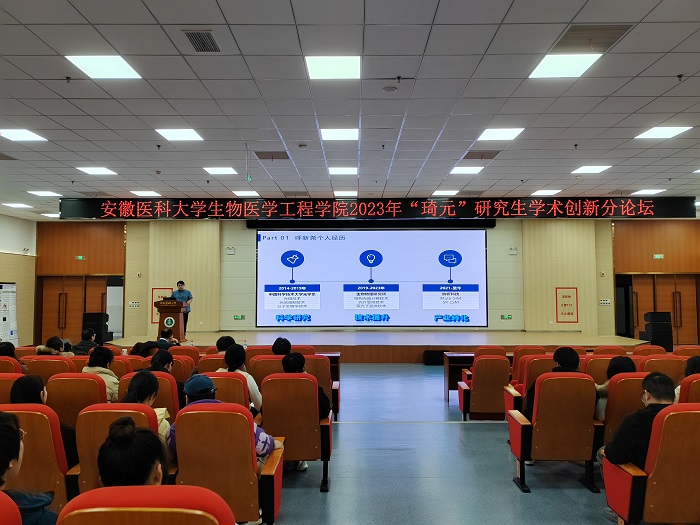 周金华在主持时就“琦元”论坛的由来作了简要介绍。他表示,作为传承我校首任校长郭琦元先生“爱国爱民、求实创新”精神的重要育人平台,“琦元”论坛已成为学校研究生科研教育的特色品牌。希望全院研究生以“琦元”论坛为契机,传承安医精神,开拓专业视野、加强学术交流,不断提高自身科研水平,努力成为堪当民族复兴大任的“新工科”“新医科”人才。