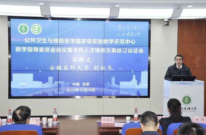 吕雄文对各位教指委专家来校指导表示热烈欢迎和诚挚谢意,对上一年教学指导委员会的工作给予充分肯定,并介绍了学校和我校公共卫生与预防医学国家级实验教学示范中心的建设发展情况。他表示,我校将持续加大对预防医学国家级实验教学中心高质量建设的支持,也希望教指委专家们为中心的建设与发展多提指导意见,推动我校公共卫生实践教学再上新台阶。