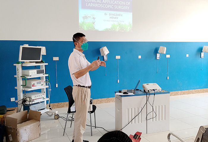 “出了国门,我们每个人都代表着国家的形象。”为了让更多当地民众了解“中国”这个万里之外的国家,丁振还带着医疗队队员们开办了“汉语桥”医疗汉语言培训班和“中国餐桌礼仪”“中国戏曲”“中国传统医学”等14节课程,介绍中华优秀传统文化,讲述中国故事。