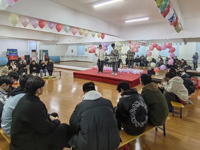 晚会节目引人入胜,高潮迭起,为在场的观众带来一场视听盛宴。小品《对王之王》展现了汉字魅力和对联的丰富内涵,弘扬了中华优秀传统文化;合唱曲目《一路向北》《晴天》带领同学们在音乐中穿梭,彰显了学子们蓬勃向上、活力十足的青春姿态。晚会还设置了踩气球、光盘拔河、“谁是卧底等趣味十足的游戏环节,使现场气氛更加热烈。晚会展现了该院学生的多才多艺以及团结协作的精神风貌,加强了师生间联系,增强了学科系的凝聚力和向心力。
