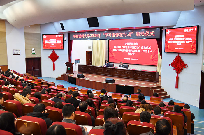 启动仪式上,顾家山、肖圣龙共同为2023年度“学习雷锋在行动”先进集体和先进个人代表颁发了荣誉证书。安徽省公共卫生临床中心(一附院北区)骨科常俊同志、生命科学学院2021级生物科学专业张廉民同学分别作为先进集体、先进个人代表发言。2023年度“学习雷锋在行动”主题活动中,学校共有22个集体以及32名师生获得先进表彰。