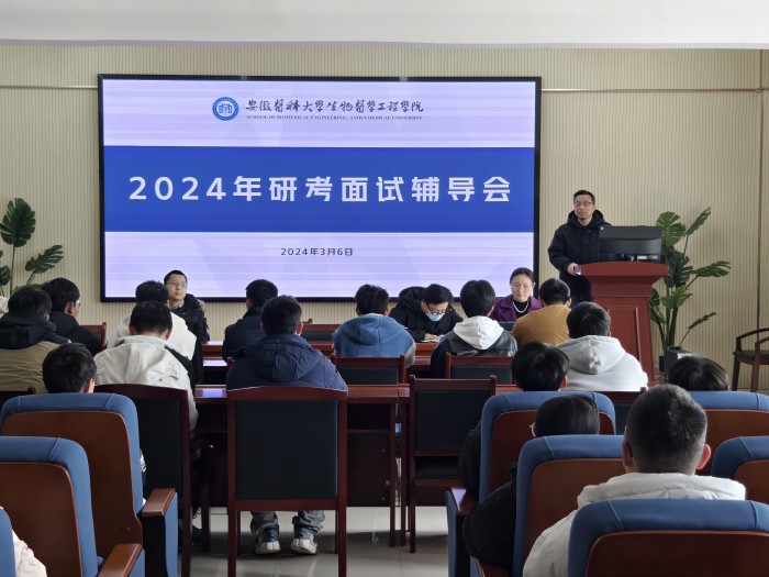 3月6日下午,生物医学工程学院举办2024年考研复试辅导会,该院副院长周金华主持会议,学院拟参加考研复试的全体考生参加。