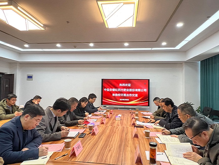 3月8日上午,中盐安徽红四方肥业股份有限公司总经理陈国庆一行来校,就人才培养、科研合作、成果转化等内容开展合作交流,副校长肖圣龙出席座谈会。